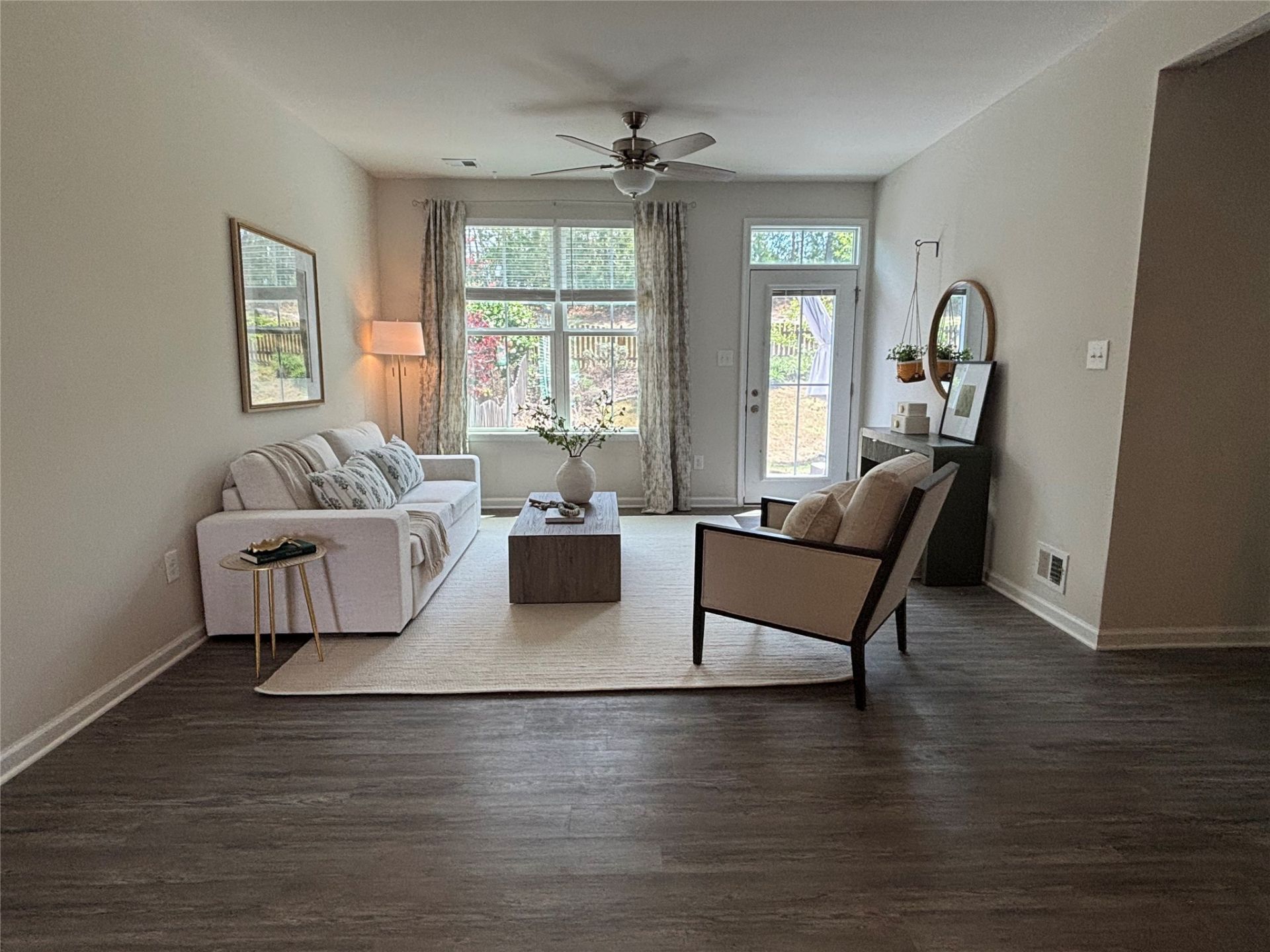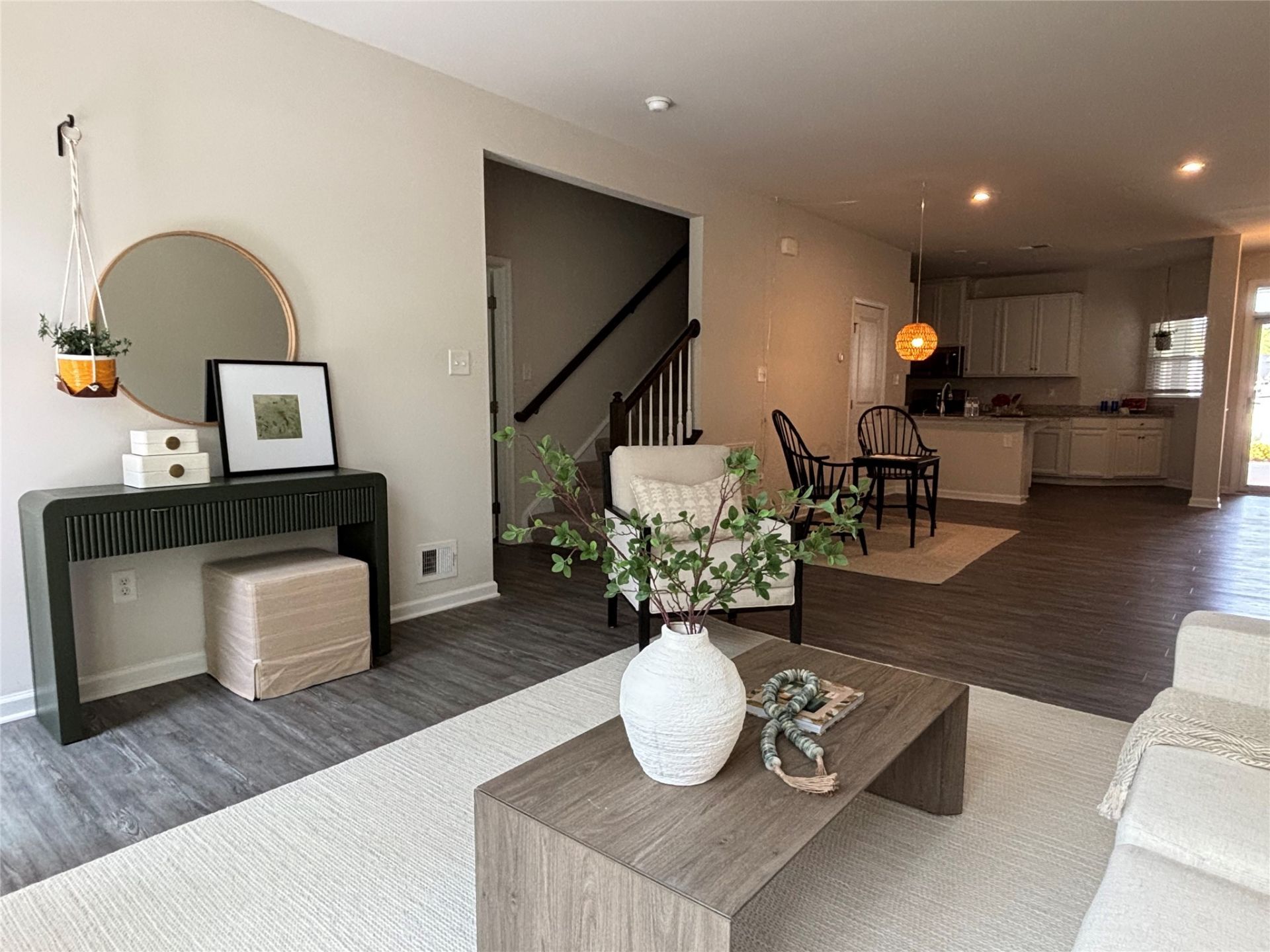 Beautiful 3-bedroom, end-unit townhouse offering first floor primary living, two additional bedrooms on second level. Open floor plan providing easy flow between kitchen, dining and living spaces. Fabulous kitchen with farmhouse sink, granite countertops and gas cooking. Enjoy the outdoor living space with a fenced backyard and patio. Two car attached garage with direct access to the home. Stonehouse Townes HOA provides lawn maintenance, trash pick up, pool & clubhouse.